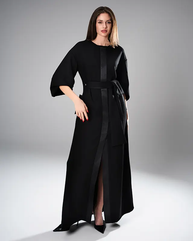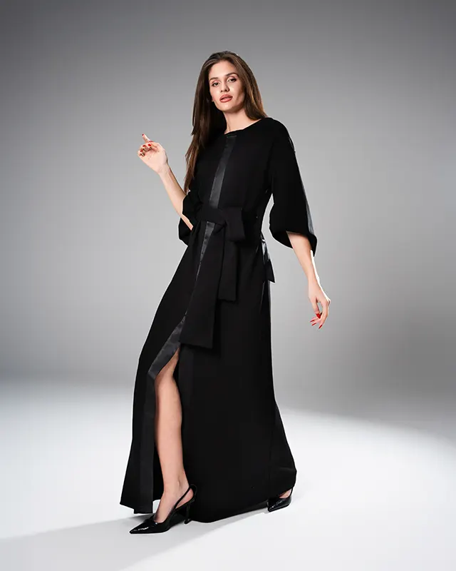 Aurora Black - Duga haljina sa satenskom trakom - Moda Felićita