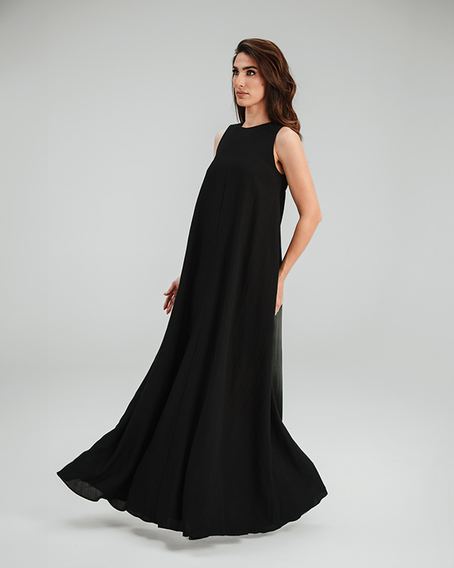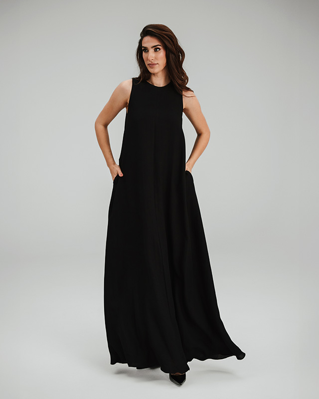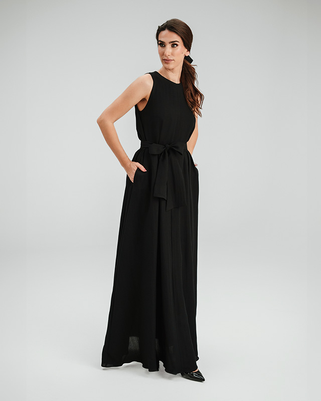 • Aurora Black - Duga haljina sa satenskom trakom - Moda FelićitaAurora Black - Duga haljina sa satenskom trakom - Moda Felićita