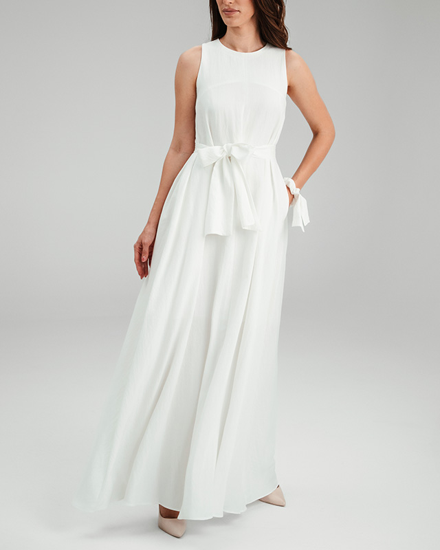 • Aurora White - Duga haljina sa satenskom trakom - Moda FelićitaAurora White - Duga haljina sa satenskom trakomRasprodato